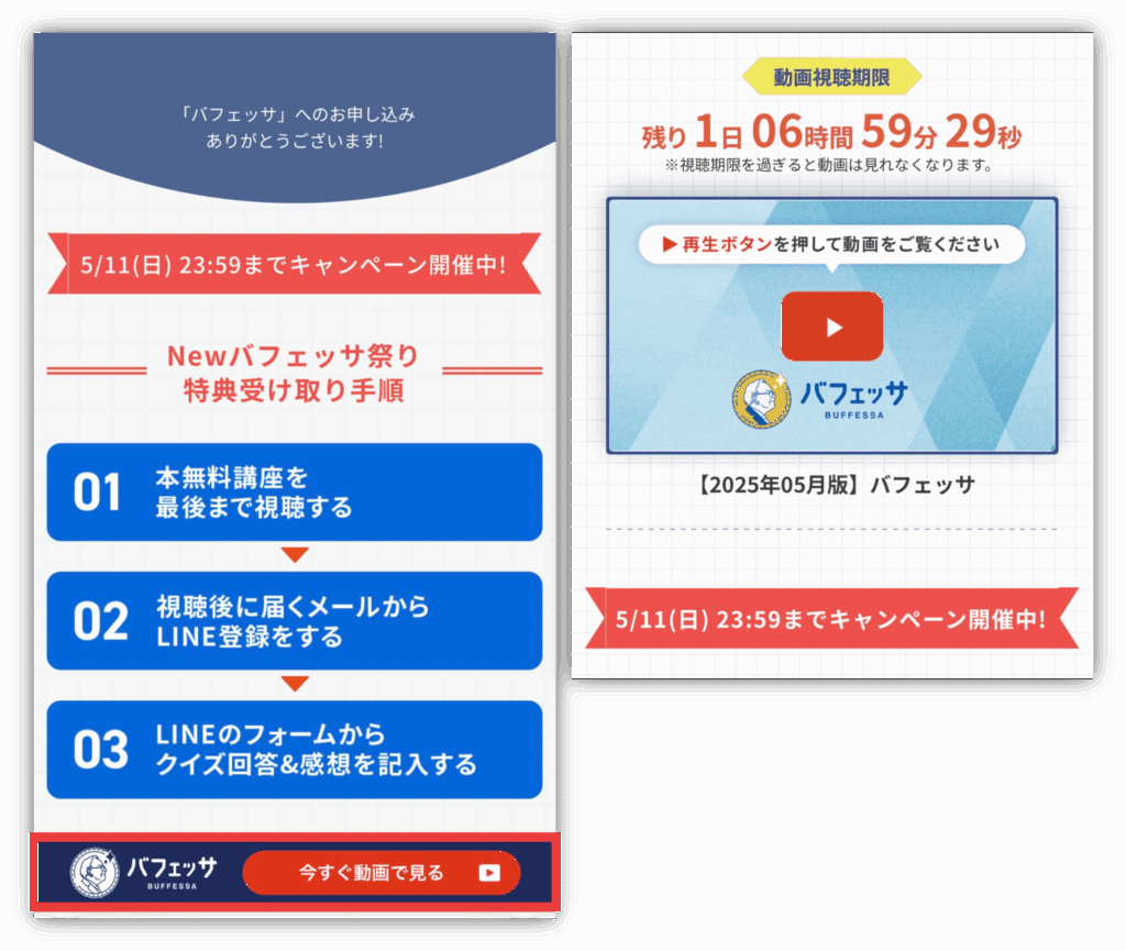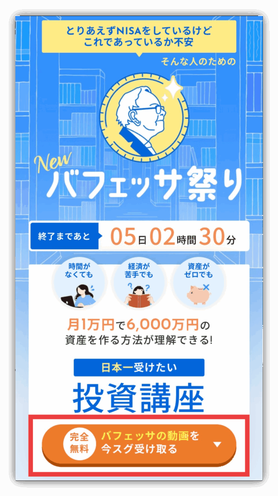 公式サイトに切り替わったら「バフェッサの動画を今スグ受け取る」をタップしよう☺️