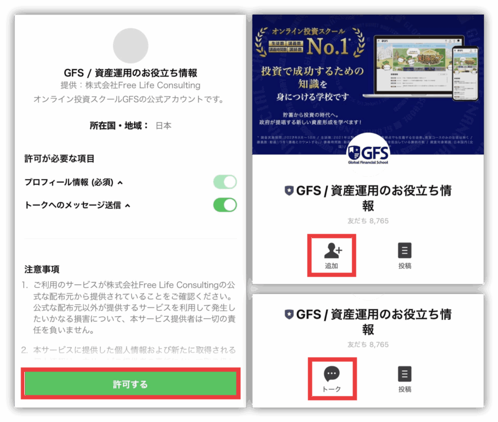 最後に、特典を受け取るために、運営元であるGFSの公式LINEに登録しよう!
