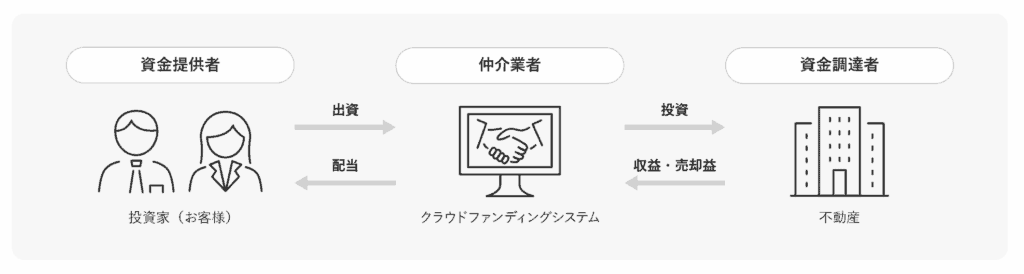 投資家が少しずつ出し合ったお金をもとに、事業者が不動産を運用する仕組み。