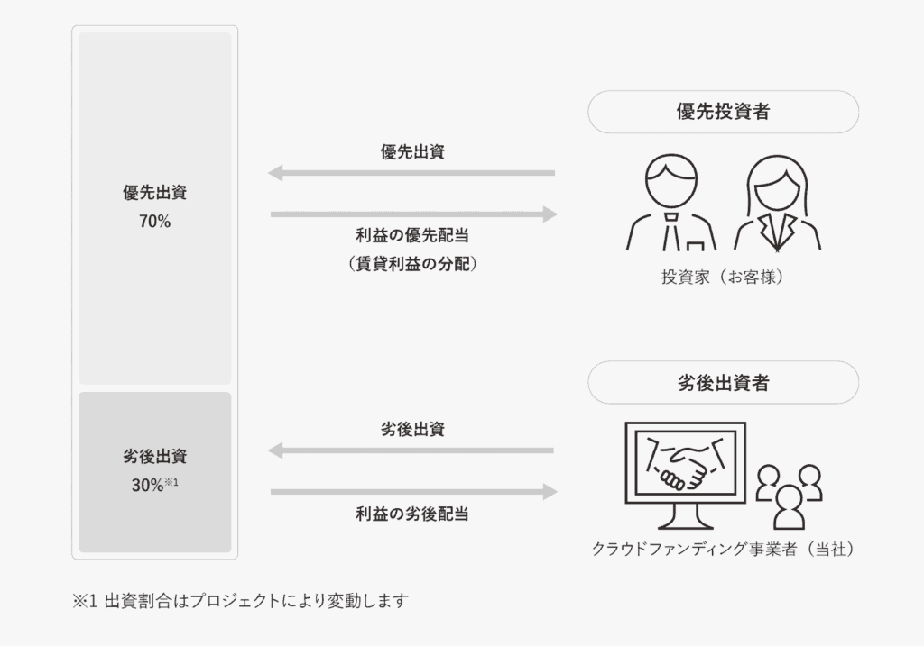 GATES FUNDINGでは、元本割れのリスクに備えて「優先劣後システム」を採用しているよ🥰