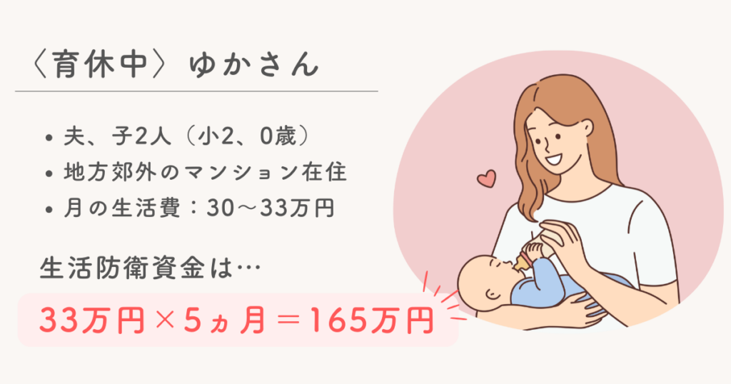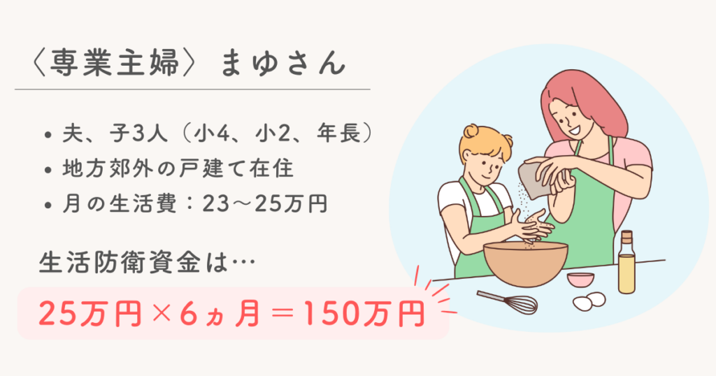夫が正社員で子どもがいるご家庭の場合、生活防衛資金の目安は「生活費の3~6ヵ月分」だけど、